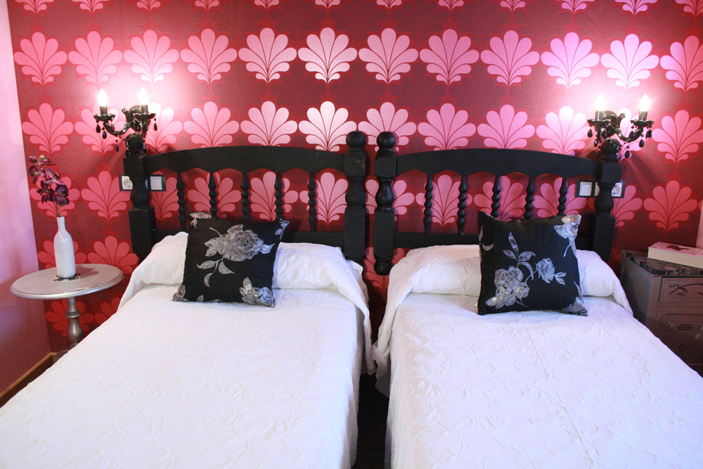 Habitación doble con 2 camas de 90 cm y bañera de hidromasaje individual.