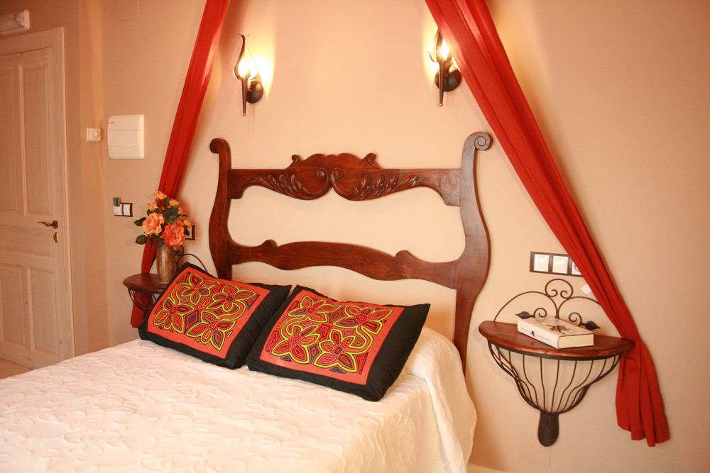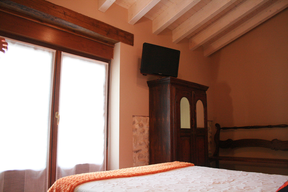 Habitación doble con cama de matrimonio y ducha.